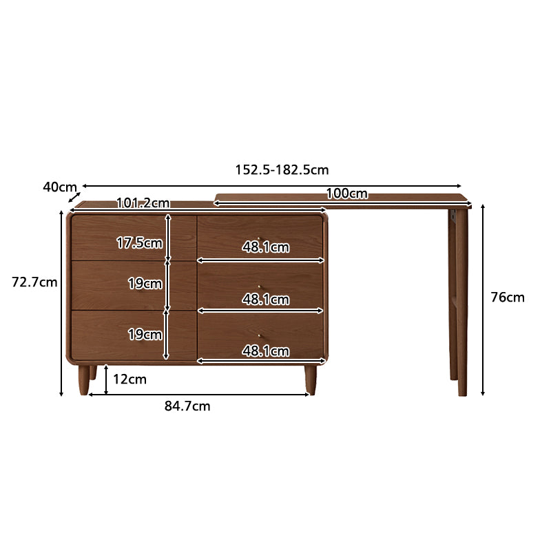 Cornelius 0.5m FAS-Graded Solid Black Walnut Wood Dressing Table Bedside Tables 2-in-1 Set