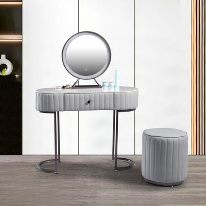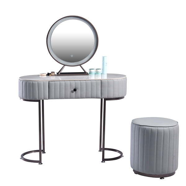 Mimow Leather Bedroom Vanity with Ceramic Tabletop/Dressing Table Set
