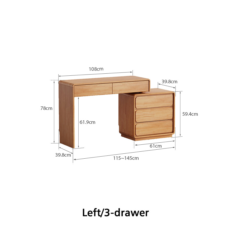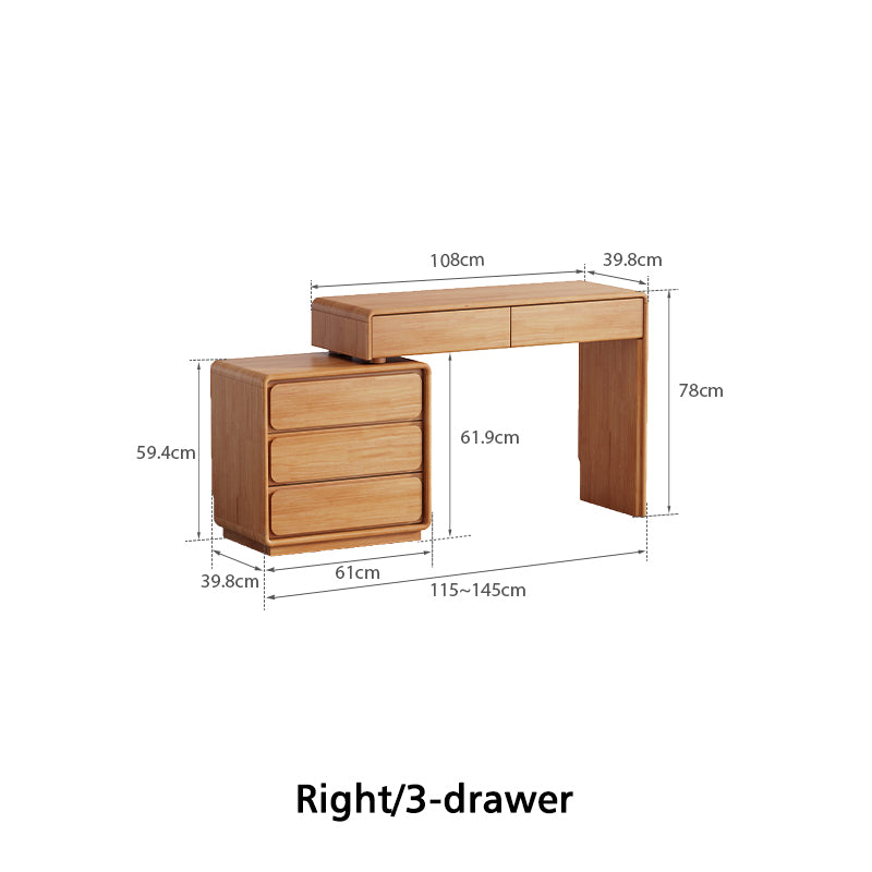 - 3-drawer dressing table: (115-145)W cm x 39.8D cm x 78H cm