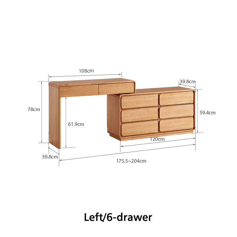 - 6-drawer dressing table: (175.5-204)W cm x 39.8D cm x 78H cm