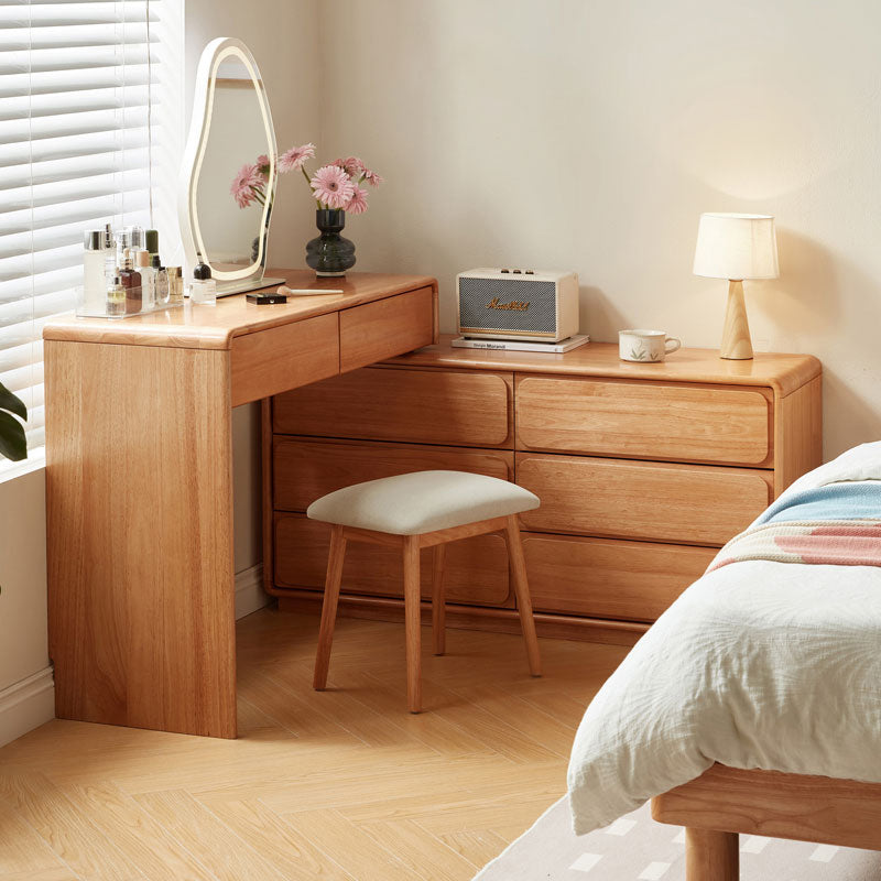 Heathcliff Rubberwood Adjustable Dressing Table/Bedroom Vanity Table with Drawer/Mirror/Stool