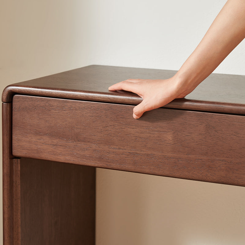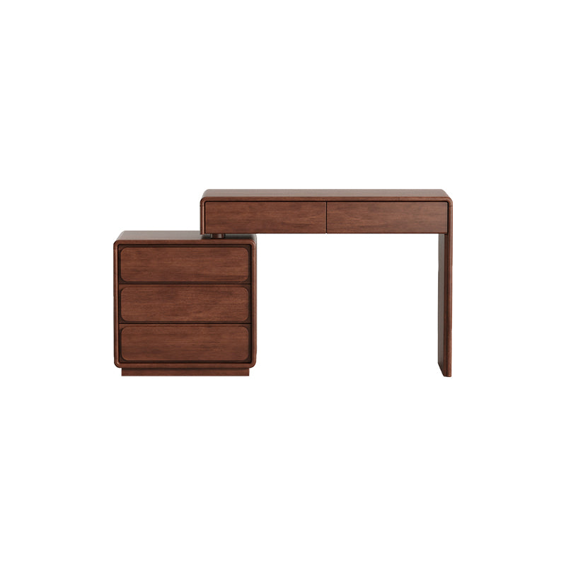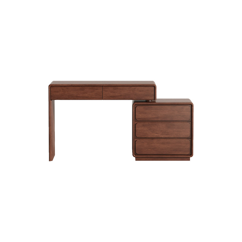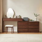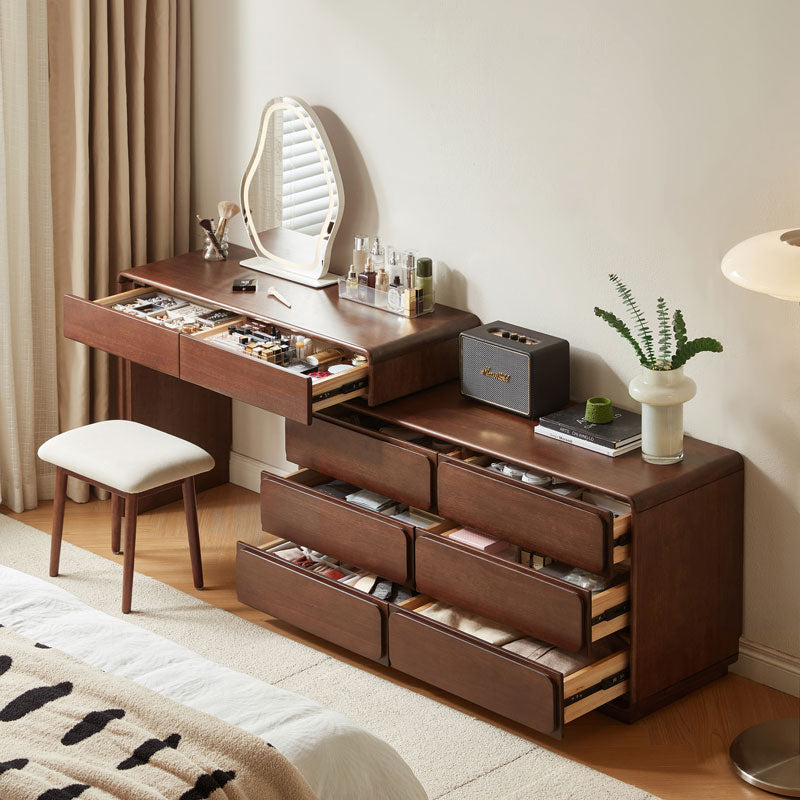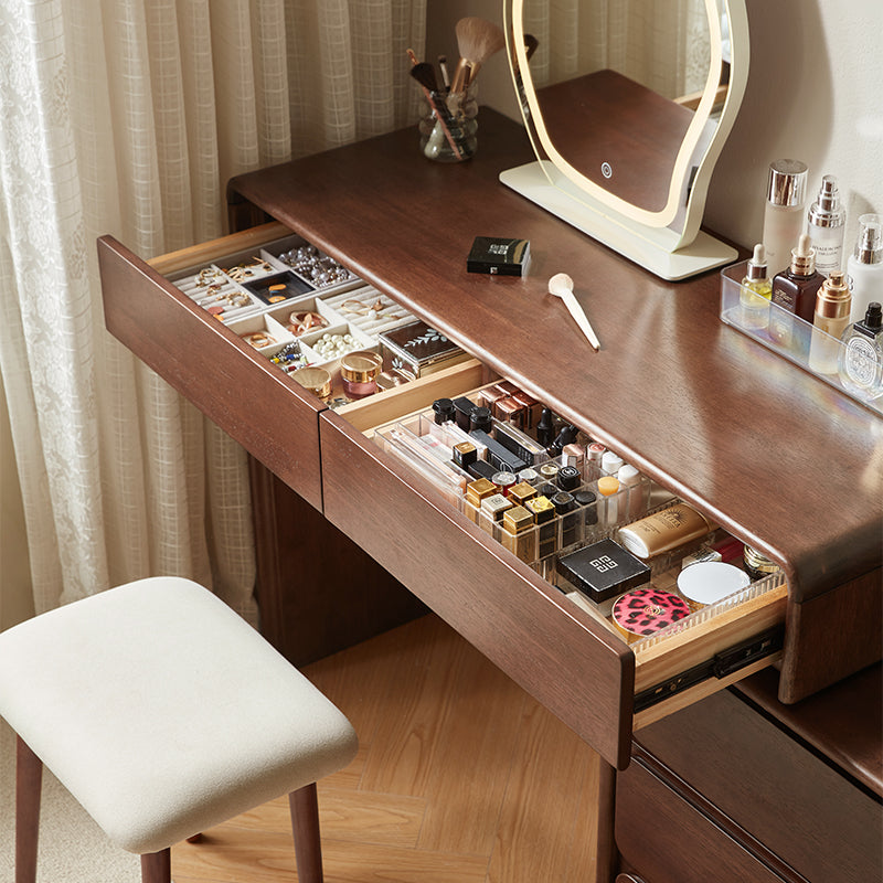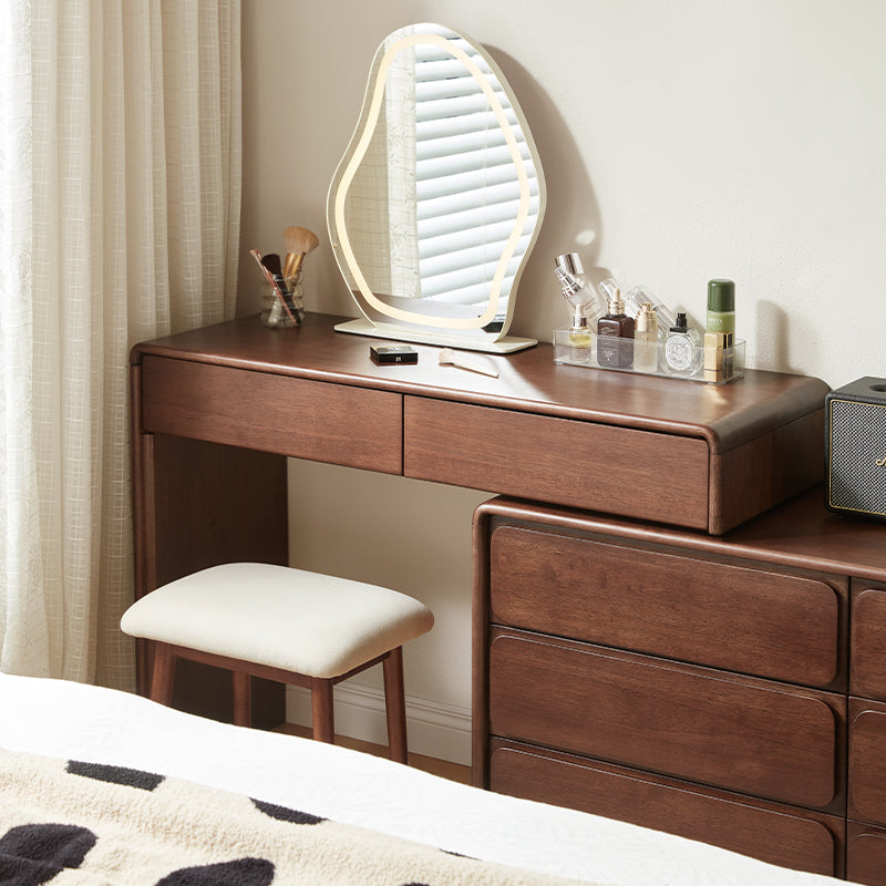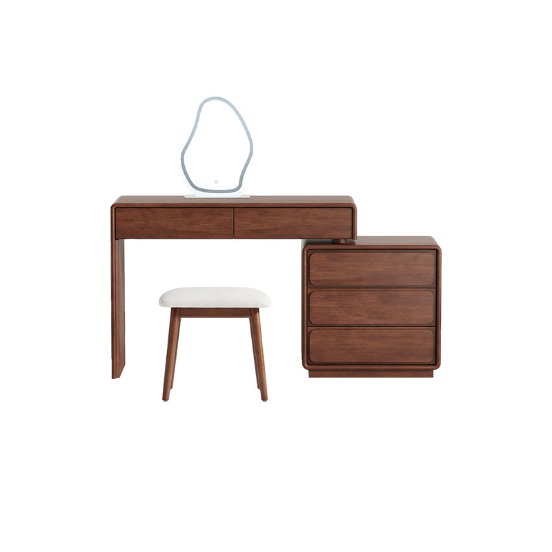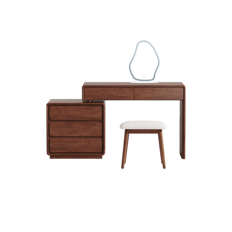 Heathcliff Rubberwood Adjustable Dressing Table/Bedroom Vanity Table with Drawer/Mirror/Stool Walnut Color