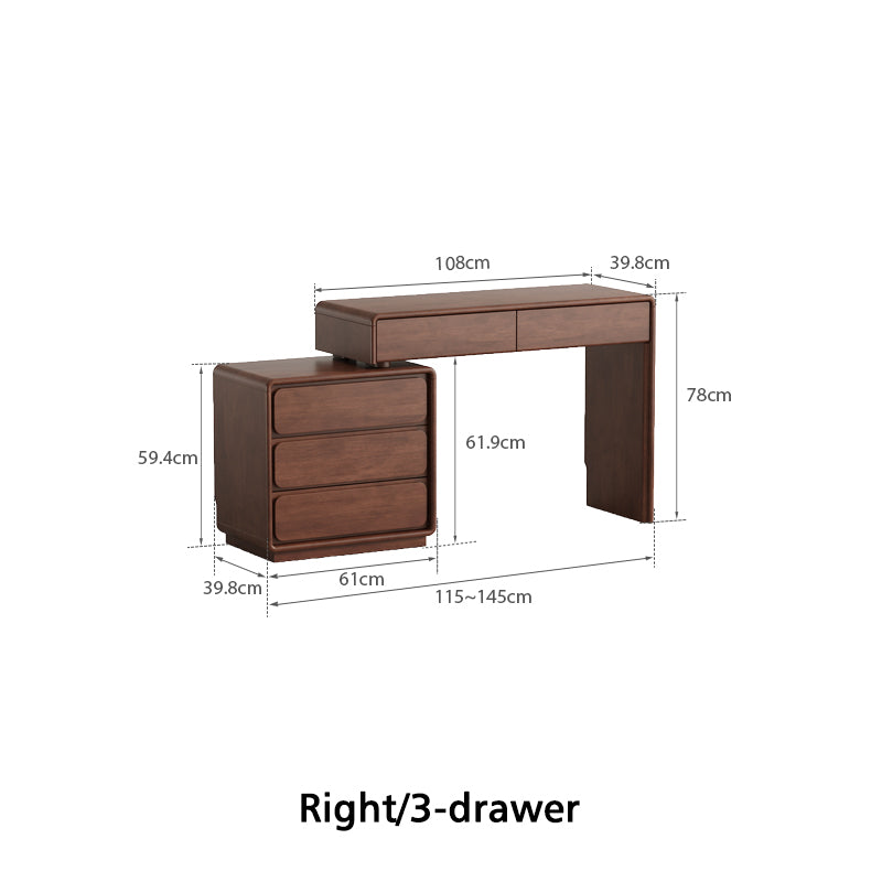 - 3-drawer dressing table: (115-145)W cm x 39.8D cm x 78H cm