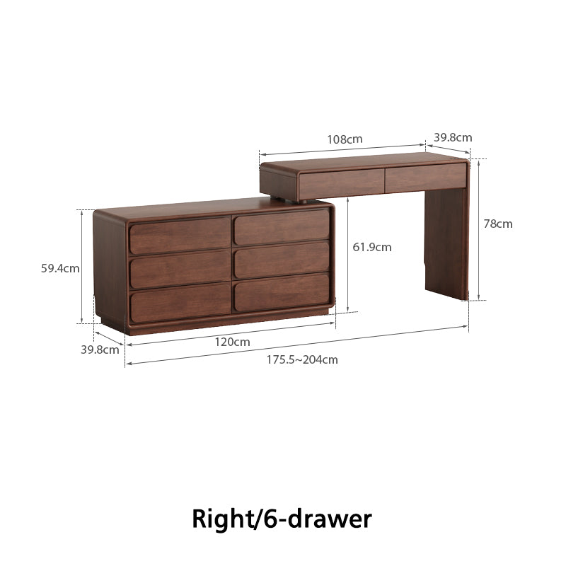 - 6-drawer dressing table: (175.5-204)W cm x 39.8D cm x 78H cm