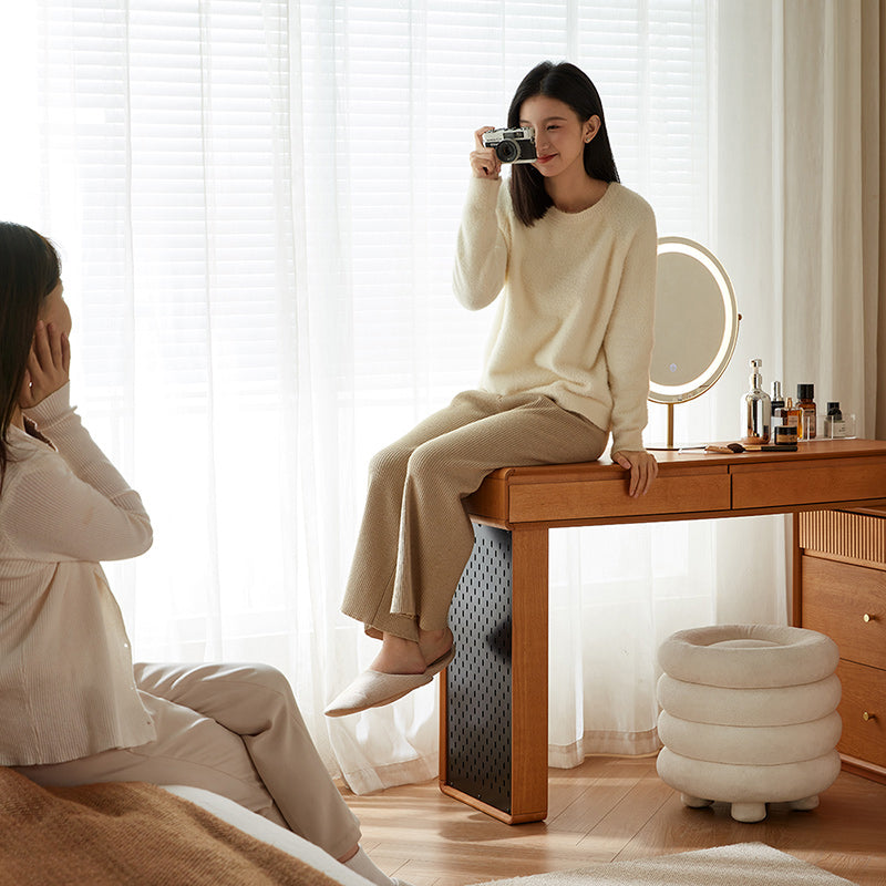 Agatha Bedroom Vanity Table/Dressing Table Set with Drawer/Stool/Carbon Crystalline Panel