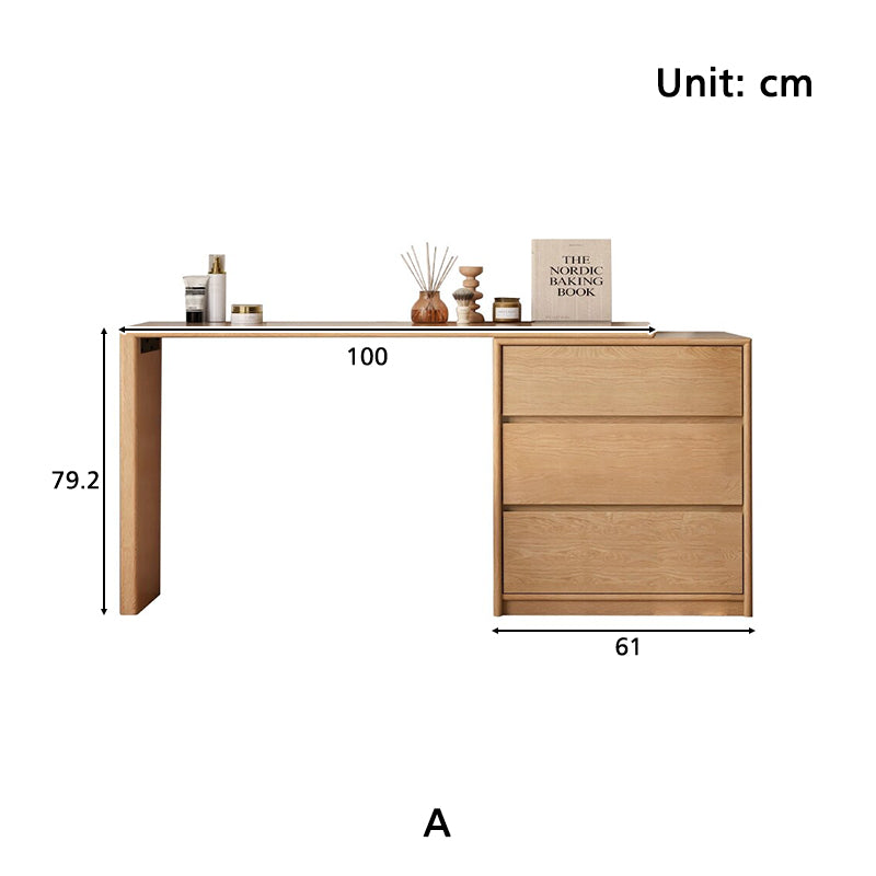 Byron 1m/1.2m/1.6m FAS-Graded Solid American Oak Wood Adjustable Bedroom Vanity Table/Dressing Table with Drawer