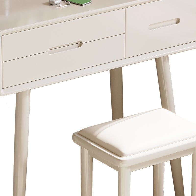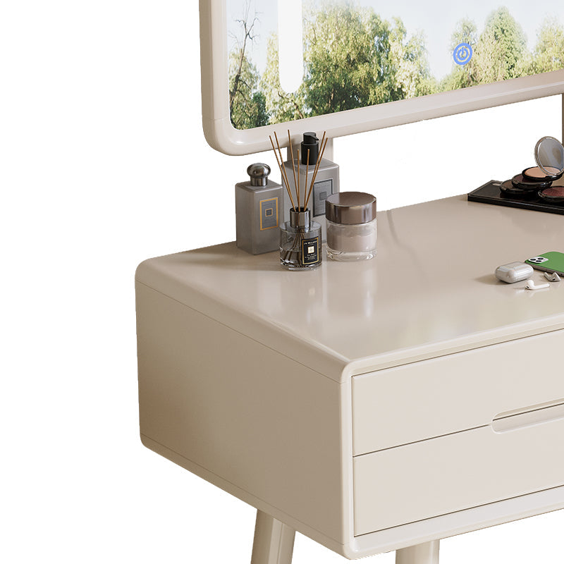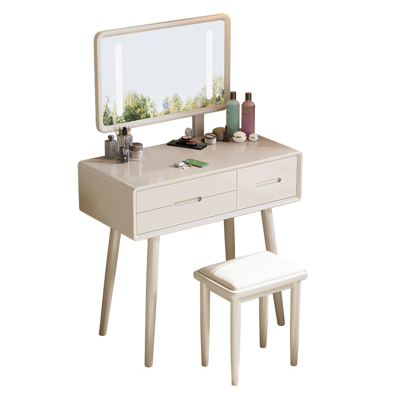 White Wood Bedroom Dressing Table with Stool and Illuminated Mirror with Stool Set