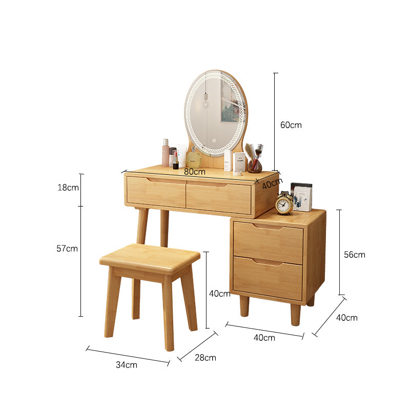 The Original Wood Colour Vanity with Storage Cabinet has been carefully designed to combine style and practicality. Crafted from durable rubberwood in a warm, log-colored finish, this dressing table will add a touch of otherworldly style to your décor. The built-in drawer storage provides ample space for cosmetics and essentials, ensuring you have a clutter-free environment. The dresser comes with an illuminated mirror to provide optimal lighting for your beauty routine.