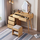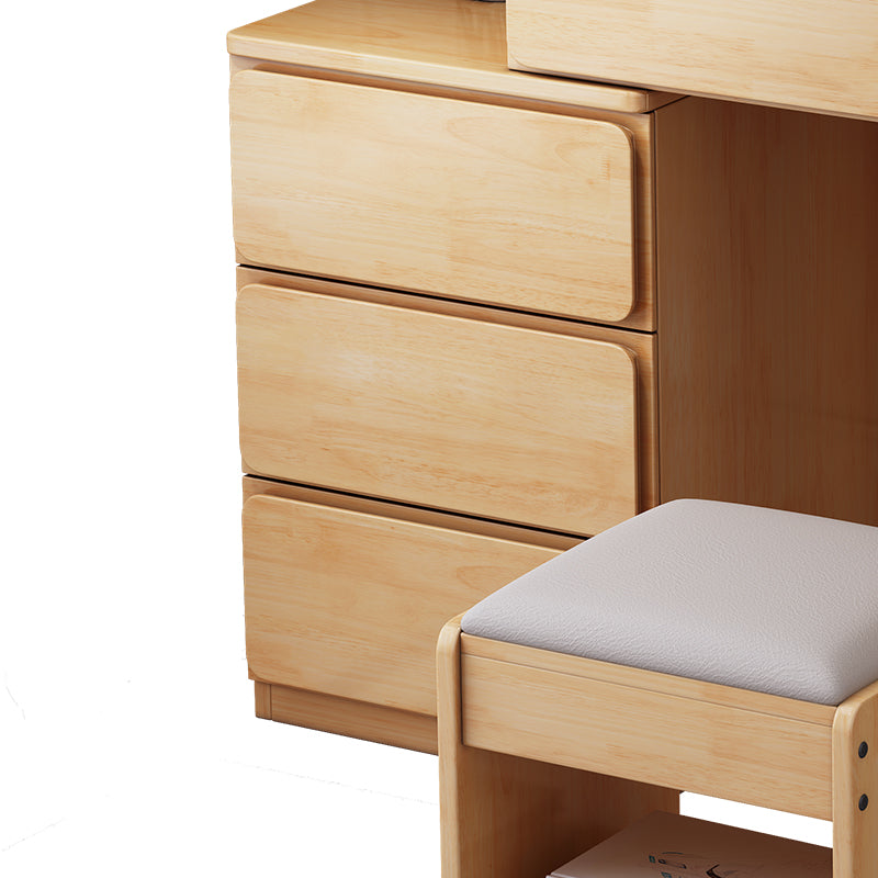 Original Wood-colored Dressing Table with Storage and Mirror/Wood Bedroom Vanity with Stool Set