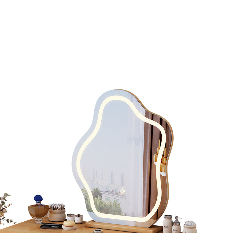 The raw wood-coloured make-up dresser with storage cabinet comes with a unique cloud-shaped illuminated vanity mirror, creating a beauty space that is both stylish and functional. Crafted from durable rubberwood, its sleek white finish adds a touch of modern elegance to your decor. Built-in storage cabinets provide ample space for cosmetics and essentials, ensuring a tidy environment.