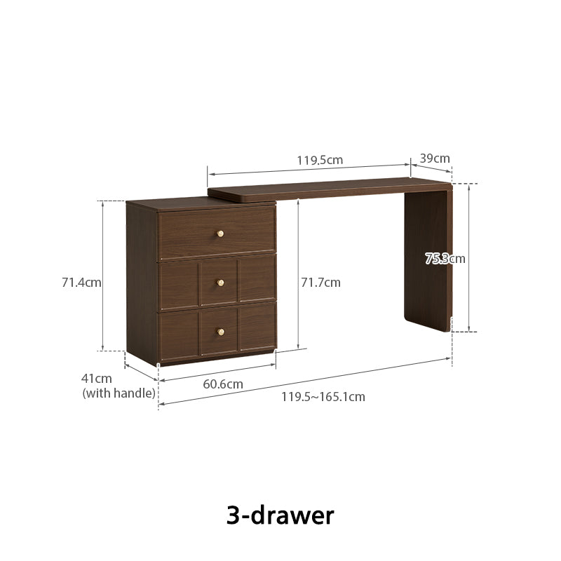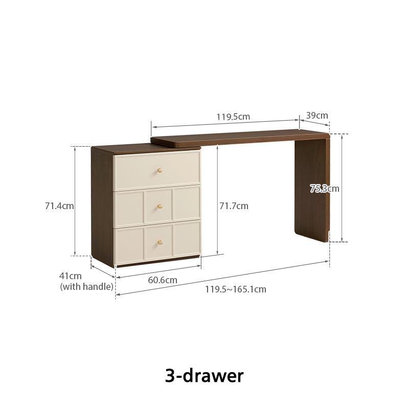 - 3-drawer Dressing Table: (119.5-165.1)W cm x 41D cm x 75.3H cm