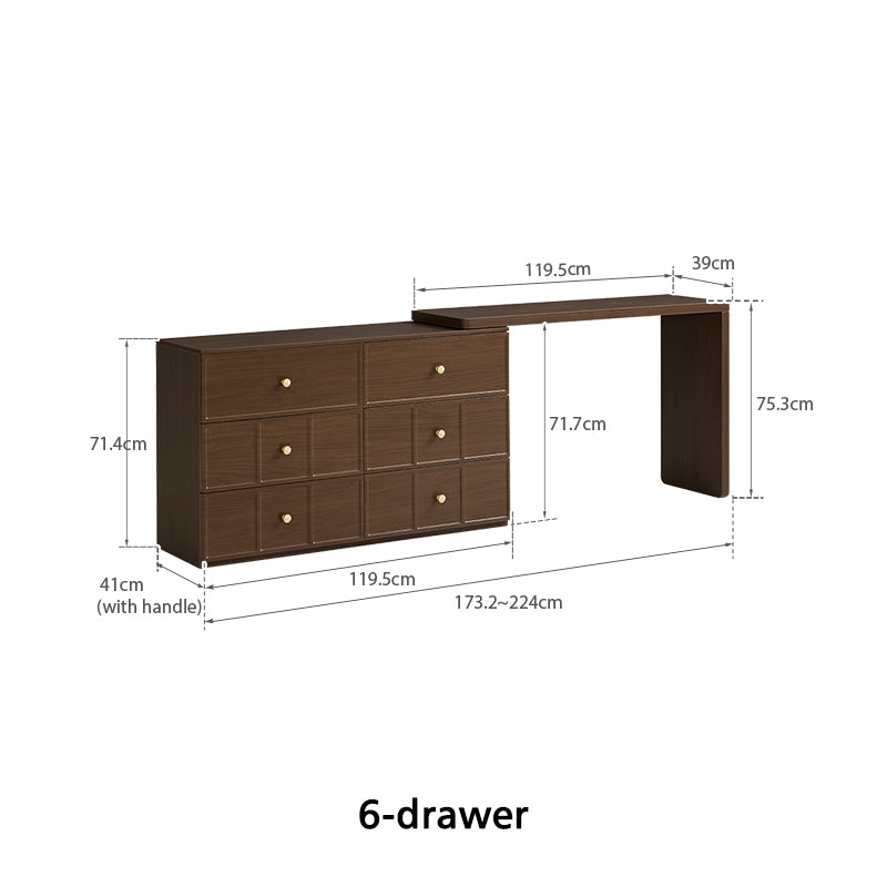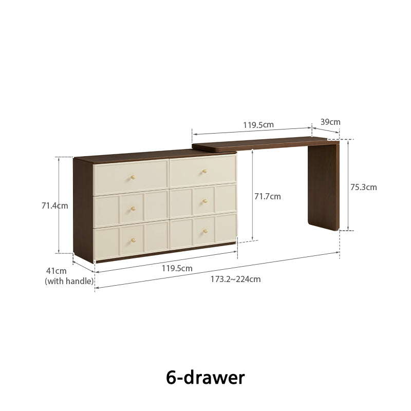 - 6-drawer Dressing Table: (173.2-224)W cm x 41D cm x 75.3H cm