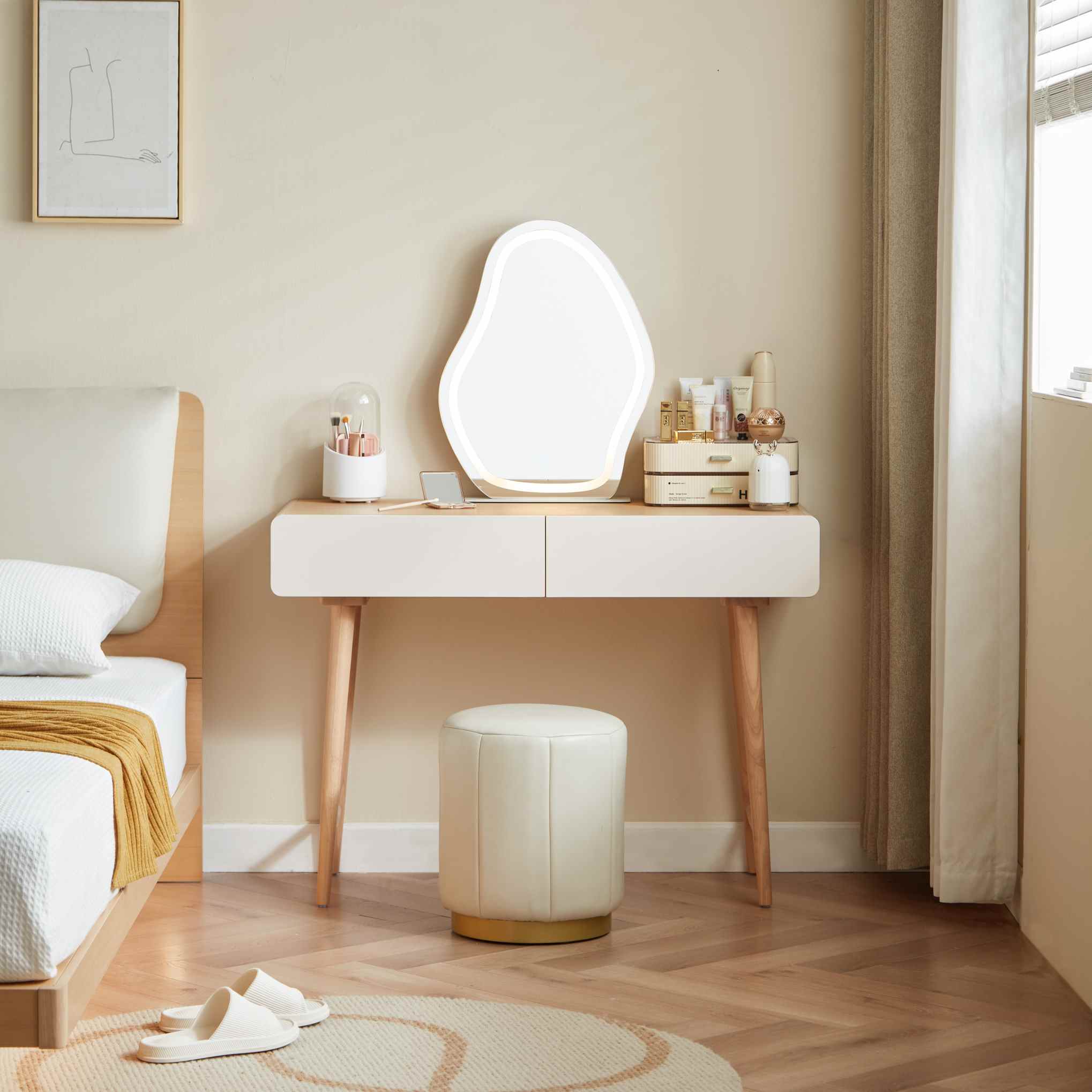 Elsmere Minimalist Vanity Set with Mirror and Stool/Dressing Table Set/Illuminate Cloud-Shape Mirror