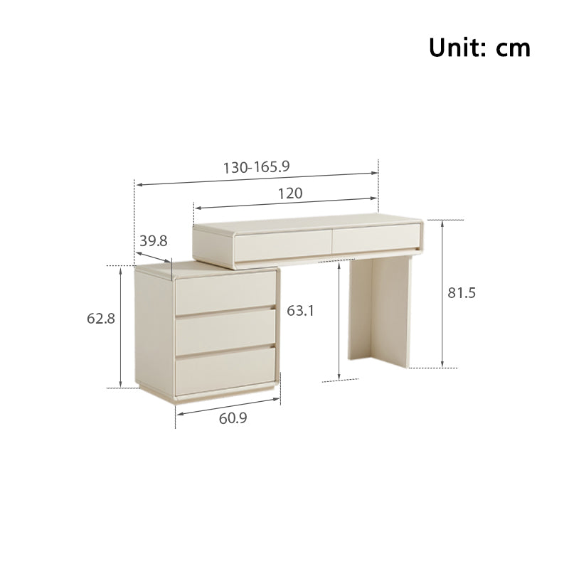 - 3-Drawer Overall Dressing Table: (130-165.9)W cm x 39.8D cm x 81.5H cm