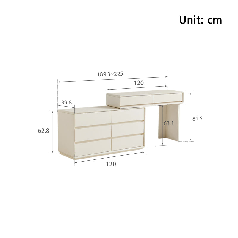 - 6-Drawer Overall Dressing Table: (189.3-225)W cm x 39.8D cm x 81.5H cm