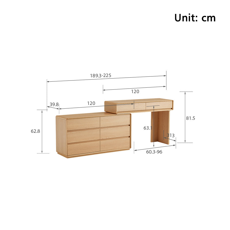 - 6-Drawer Overall Dressing Table: (189.3-225)W cm x 39.8D cm x 81.5H cm