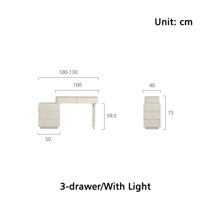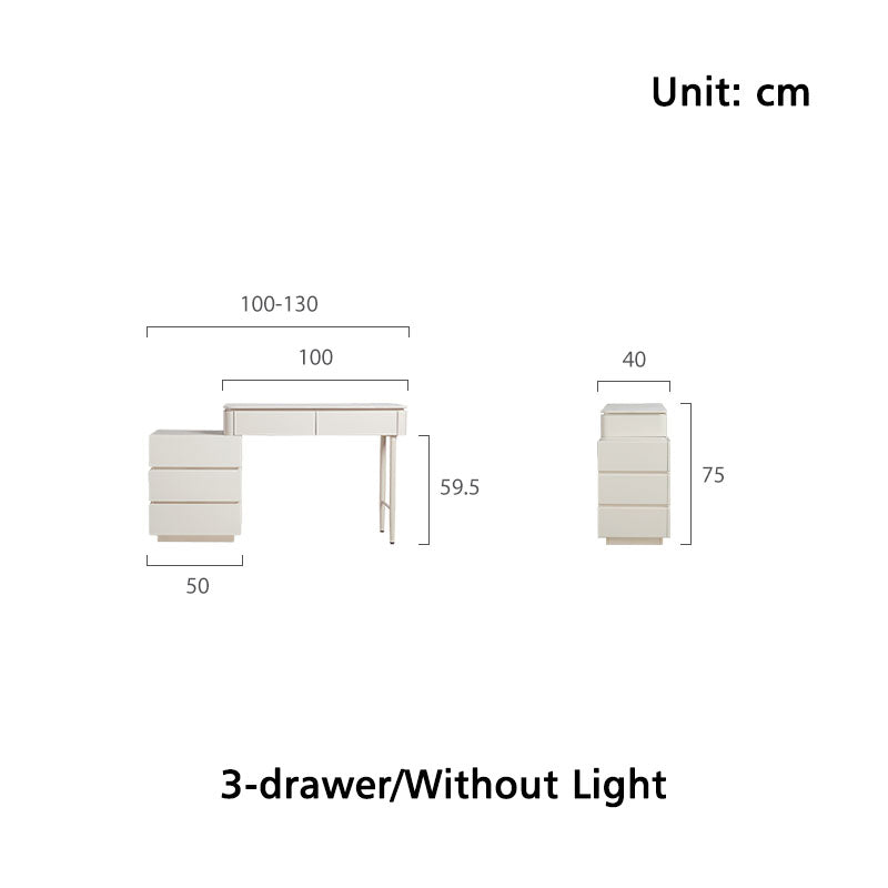 - 3-drawer: (100-130)W cm x 40D cm x 75H cm
