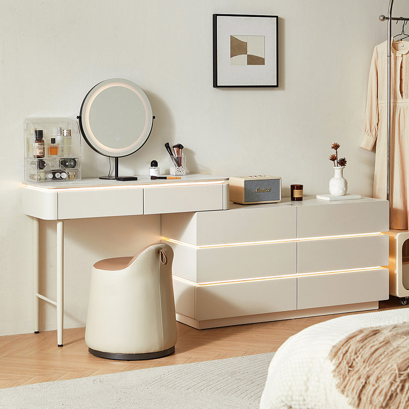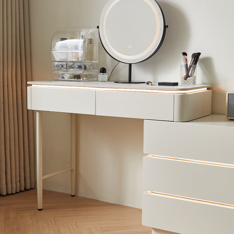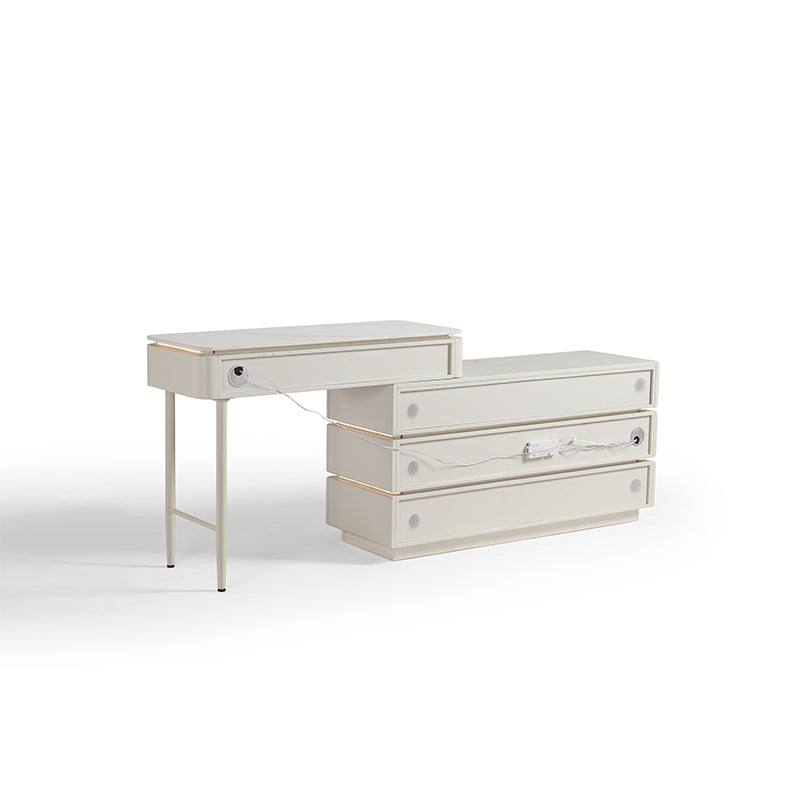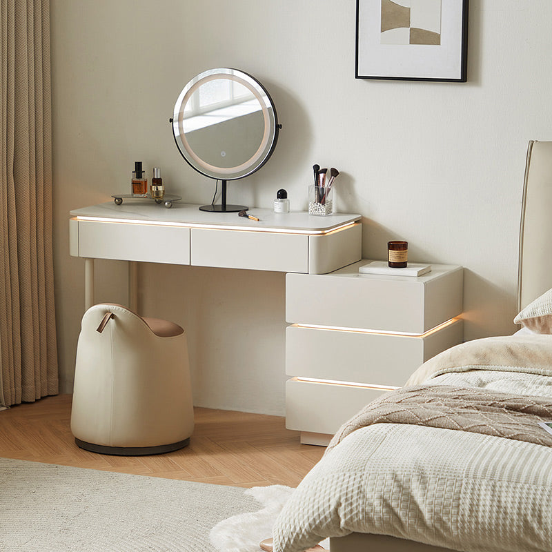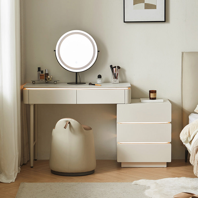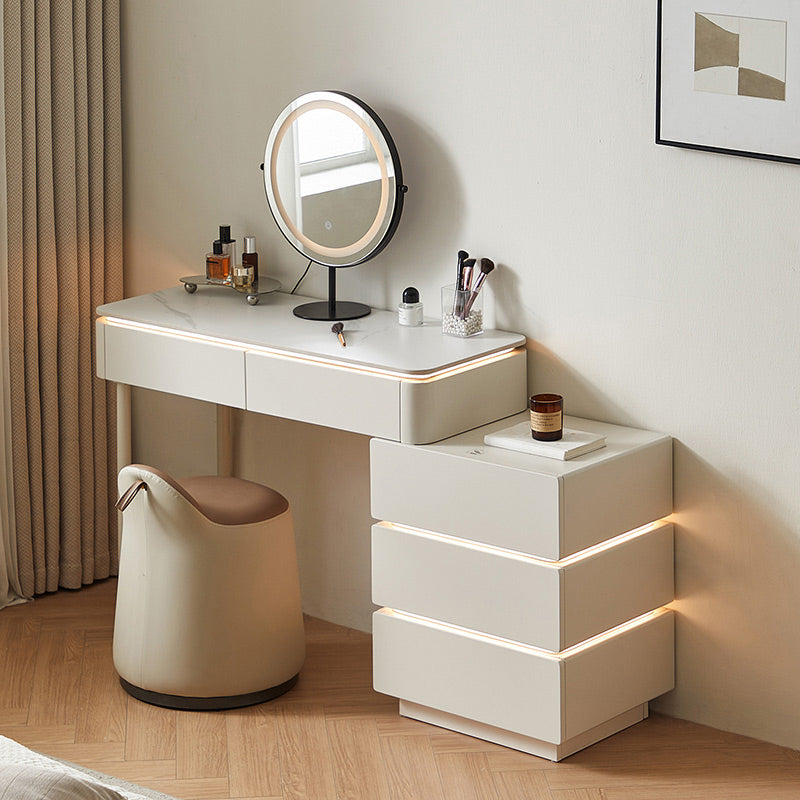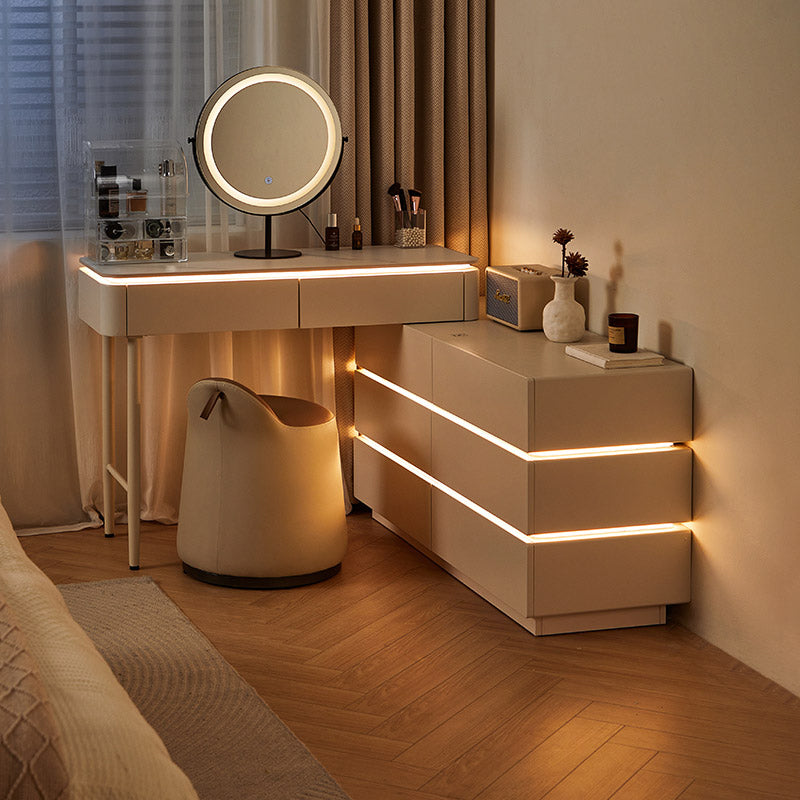 Glow up with our sleek LED vanity table! Features touch-control lighting, spacious storage, and a modern compact design. Soft-close drawers and premium finish add luxury to your routine. Perfect for flawless makeup every day!
