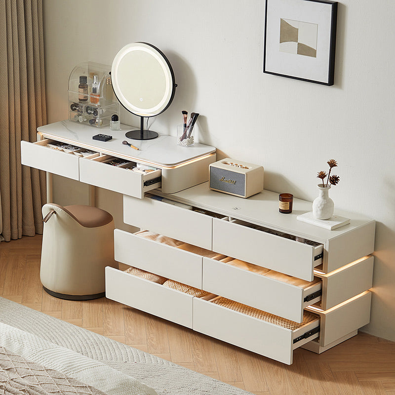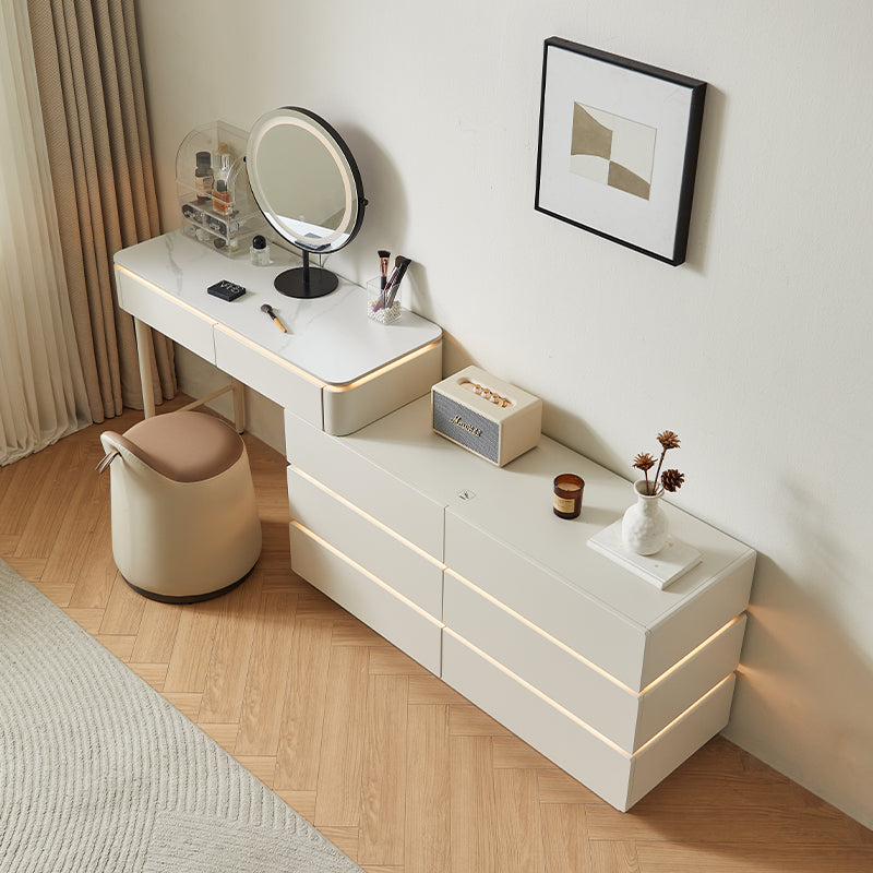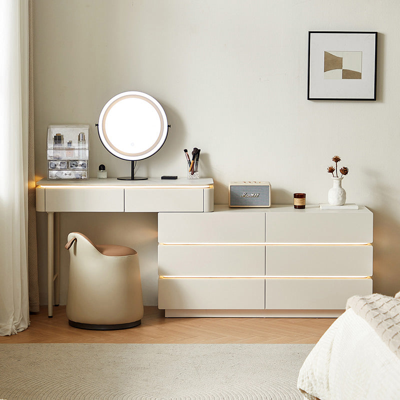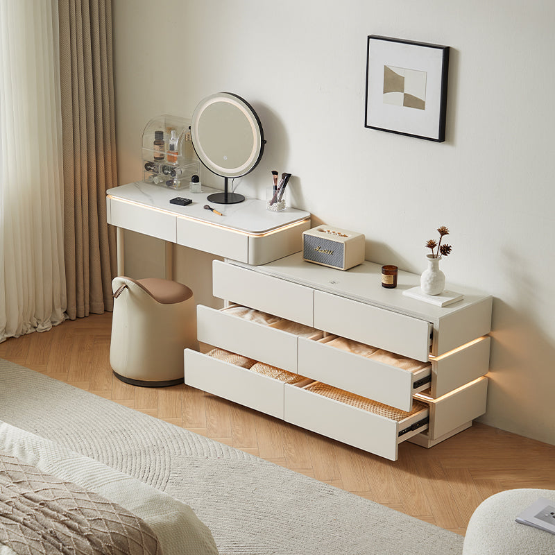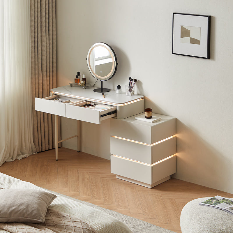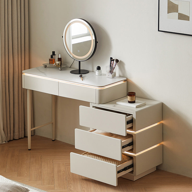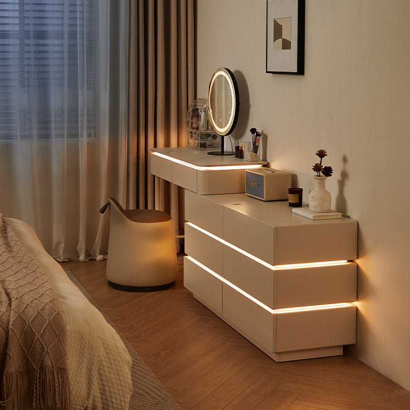 Glow up with our sleek LED vanity table! Features touch-control lighting, spacious storage, and a modern compact design. Soft-close drawers and premium finish add luxury to your routine. Perfect for flawless makeup every day!