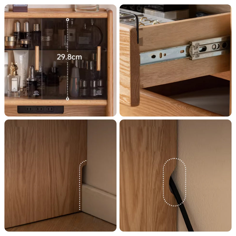 - Multiple drawers provide ample storage space for cosmetics and essentials.