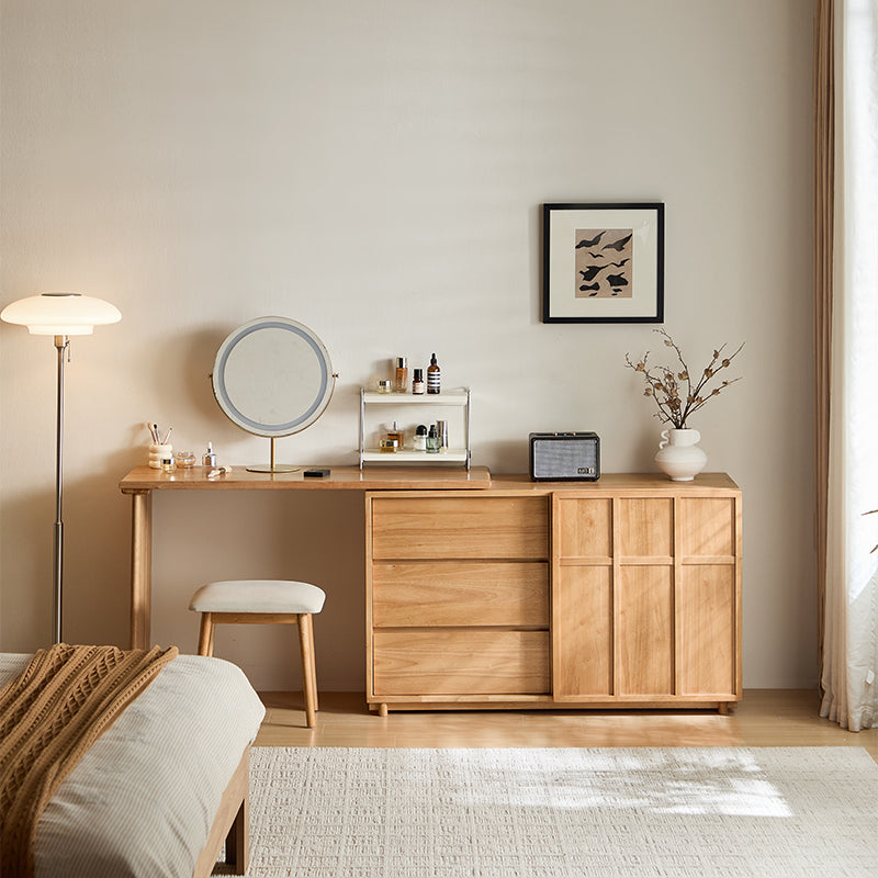 Theresa Rubberwood Bedroom Vanity Table with Drawer and Stool/Dressing Table Set